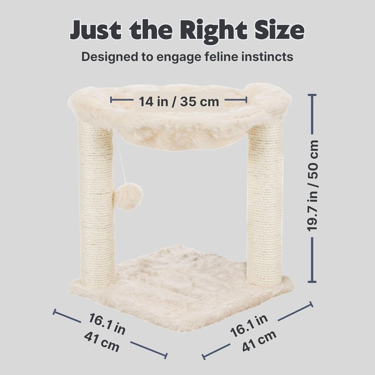 - Compact Size, Broad Appeal: At only 16″ wide, this small cat tree fits apartments or rooms of any size, while still supporting multi-pet households.