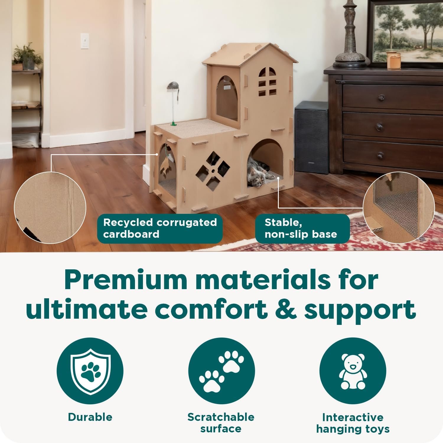 • Eco-Friendly Shoppers: With its focus on recycled cardboard and sustainable construction, eco-minded buyers will appreciate the minimized environmental impact of this cat house.
