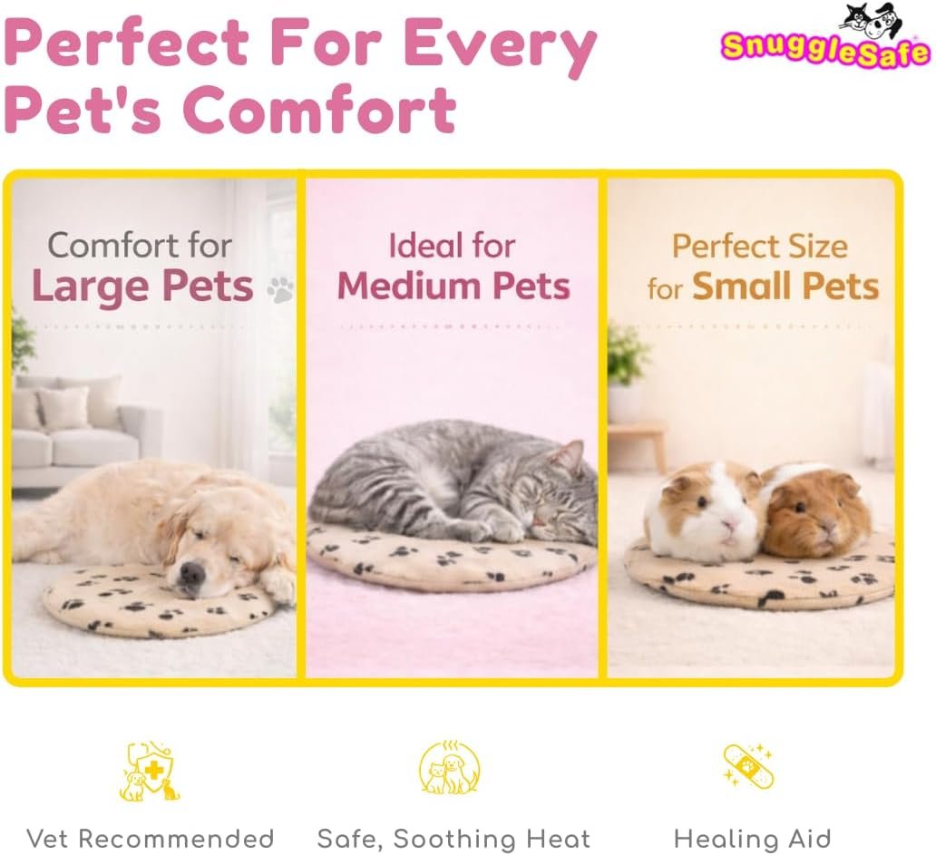 The Snuggle Safe Pet Microwave Heating Pad is a versatile, long-lasting warmth solution designed to keep dogs, cats, and small animals cozy without electricity. Simply heat the pet pad in your microwave for a few minutes and it releases gentle, soothing warmth for up to 10 hours—perfect for cold nights, anxiety relief, or soothing aching joints. Made from a durable, non-toxic filling and soft fabric cover, this microwavable pet warmer provides consistent heat that pets naturally gravitate toward for comfort and relaxation.